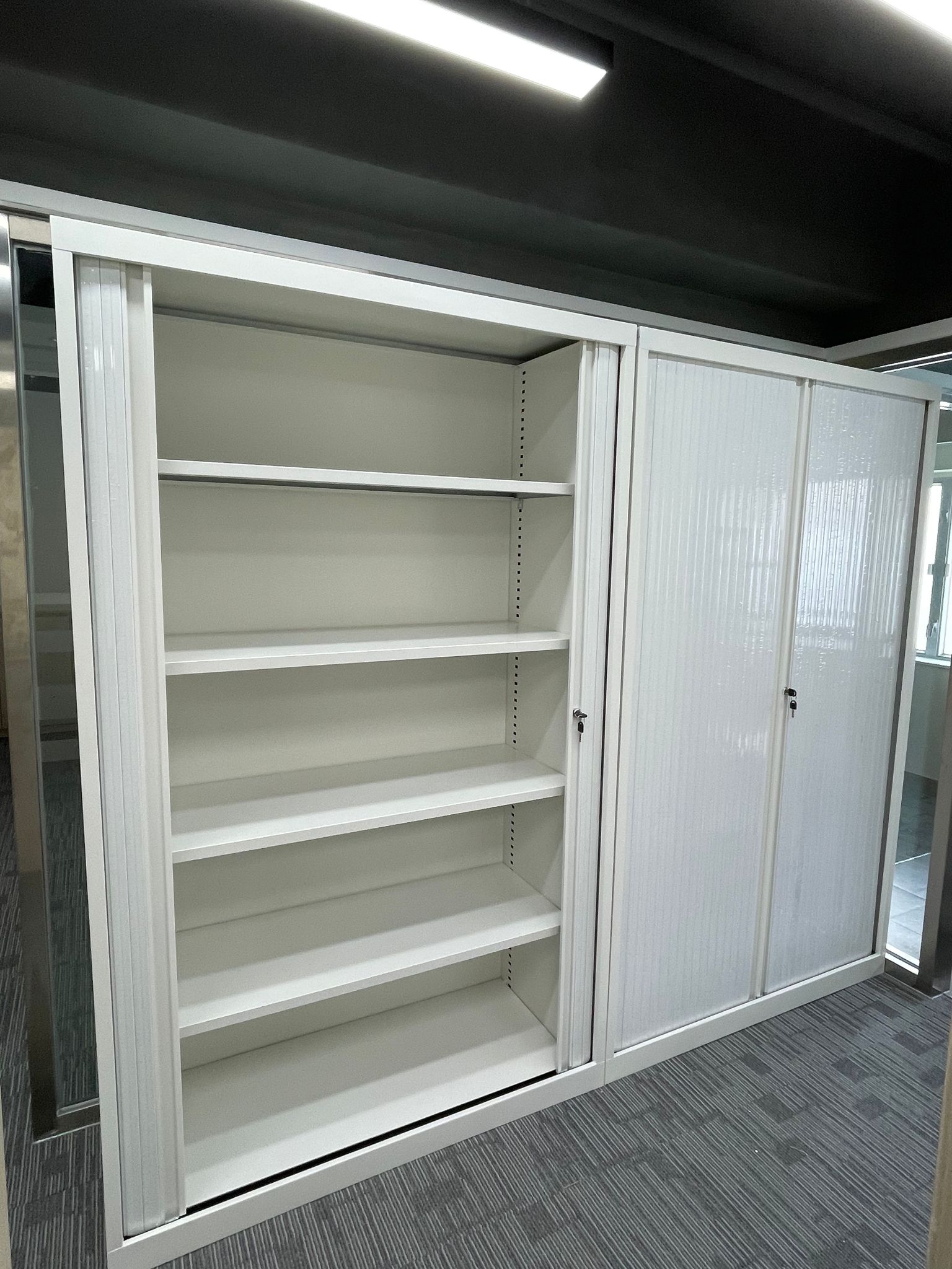 Durable and sturdy rolling shutter cabinet with adjustable shelf boards